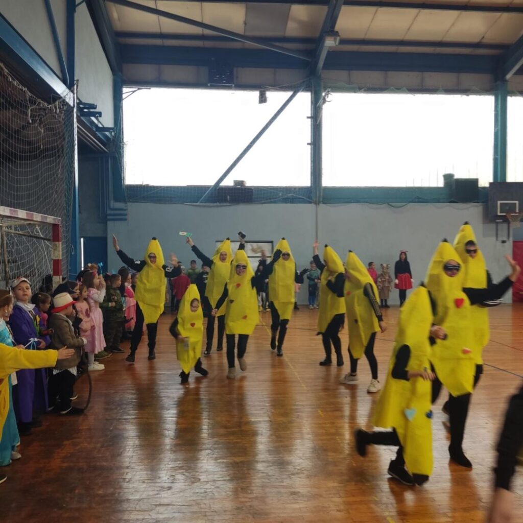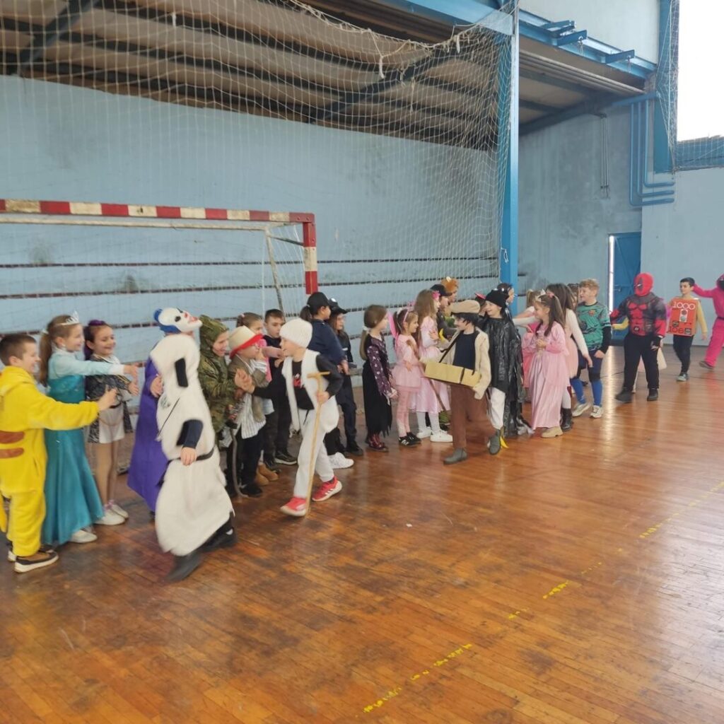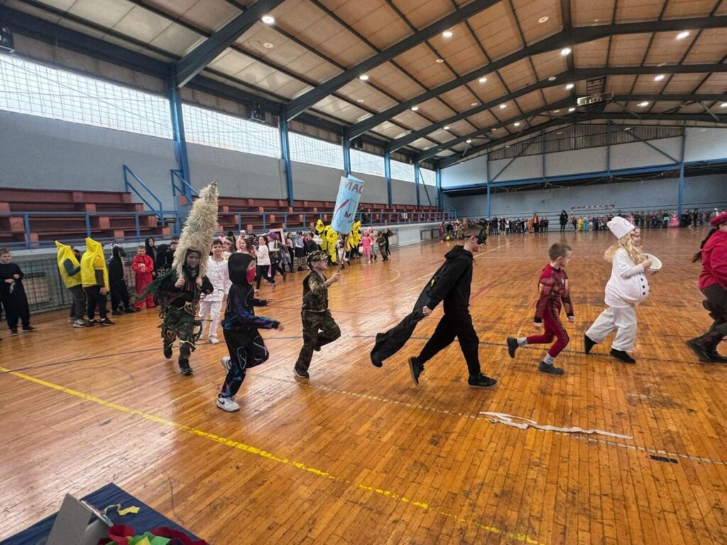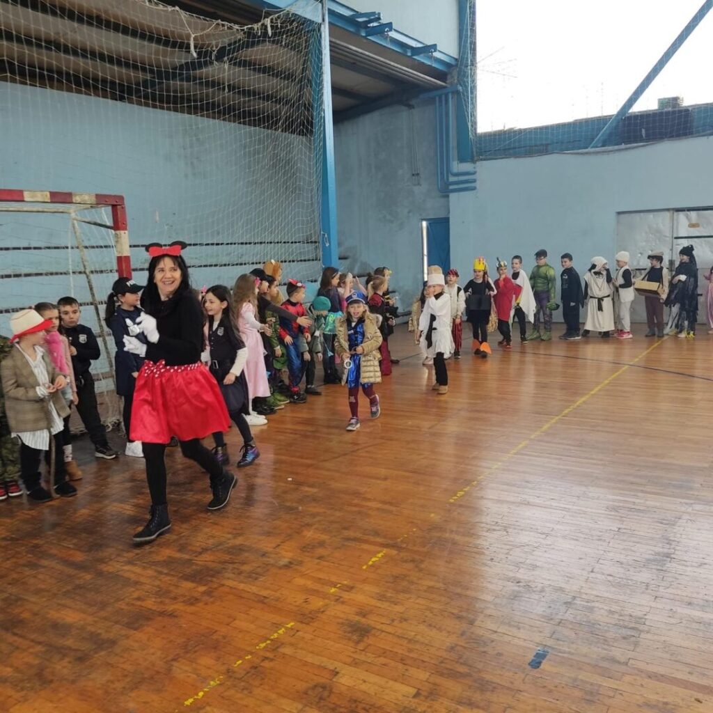 U sportskoj dvorani matične škole maskenbal razredne nastave okupio je učenike od 1. do 4. razreda te učenike posebnog odjela. Nakon uvodnog plesa i igre uslijedio je svečani defile maski, a tročlani žiri imao je zahtjevan zadatak odabrati najkreativnije pojedinačne i skupne maske. Poseban dio programa bila je tradicionalna osuda krnje, pri čemu je simbolički „krivac“ za sve nevolje bio mobitel, kao podsjetnik na važnost umjerenog korištenja tehnologije.